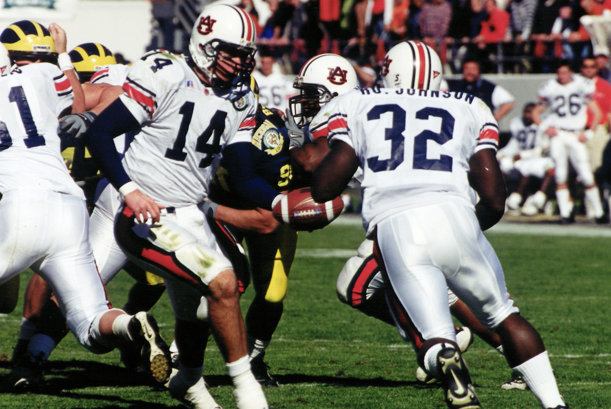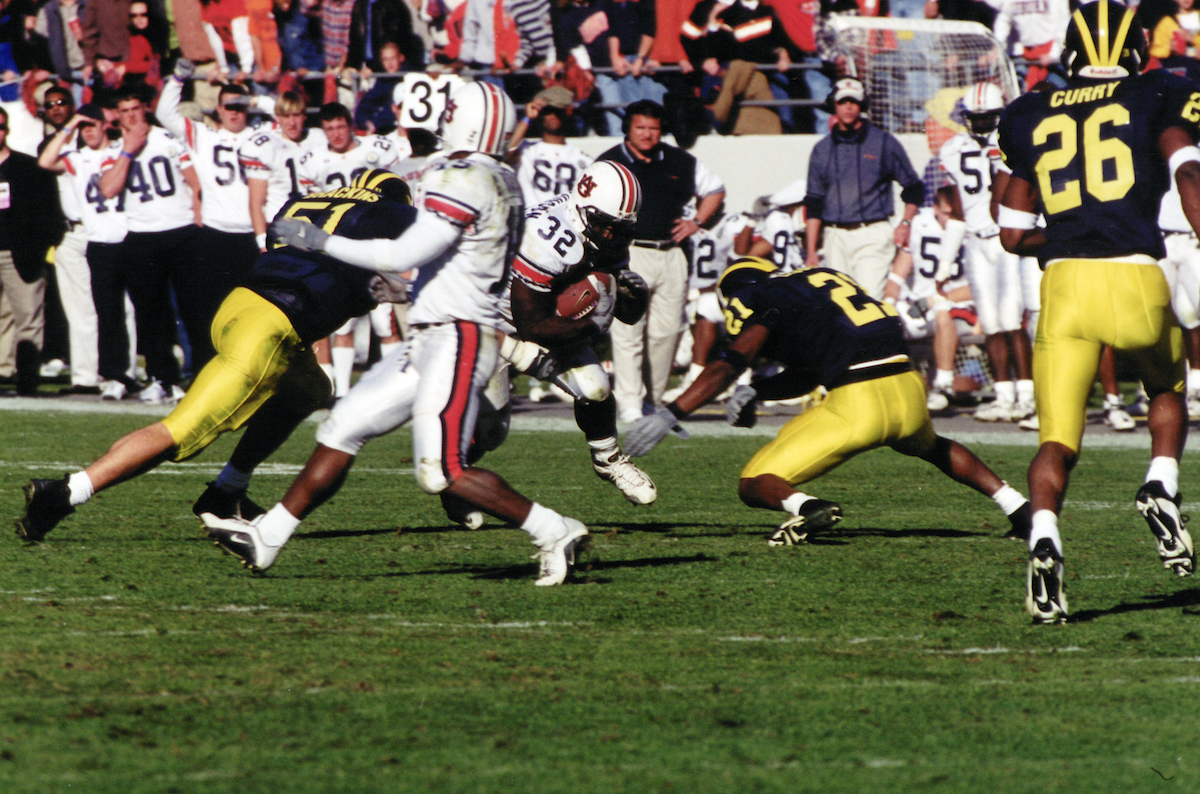Michigan’s Anthony “A-Train” Thomas rushed for 182 yards and two touchdowns to lead the Wolverines to a thrilling 31-28 victory over Auburn in front of a crowd of 66,928.