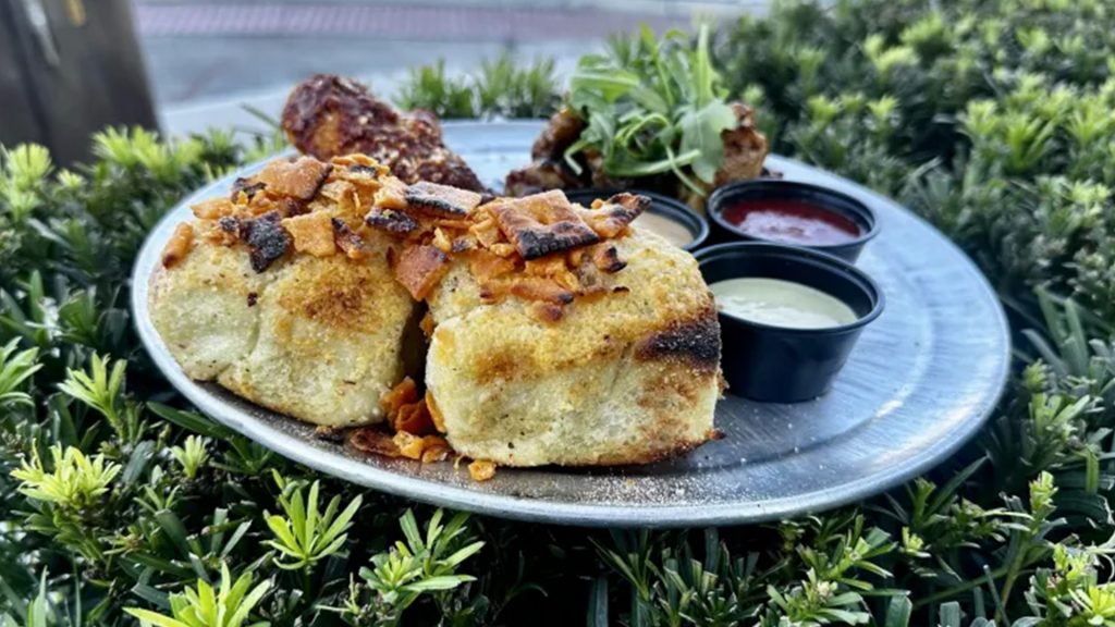 Cheez-It knots highlight a platter of off-menu exclusives, including Nashville hot meatball sliders and cannoli knots served with Mike’s Hot Honey