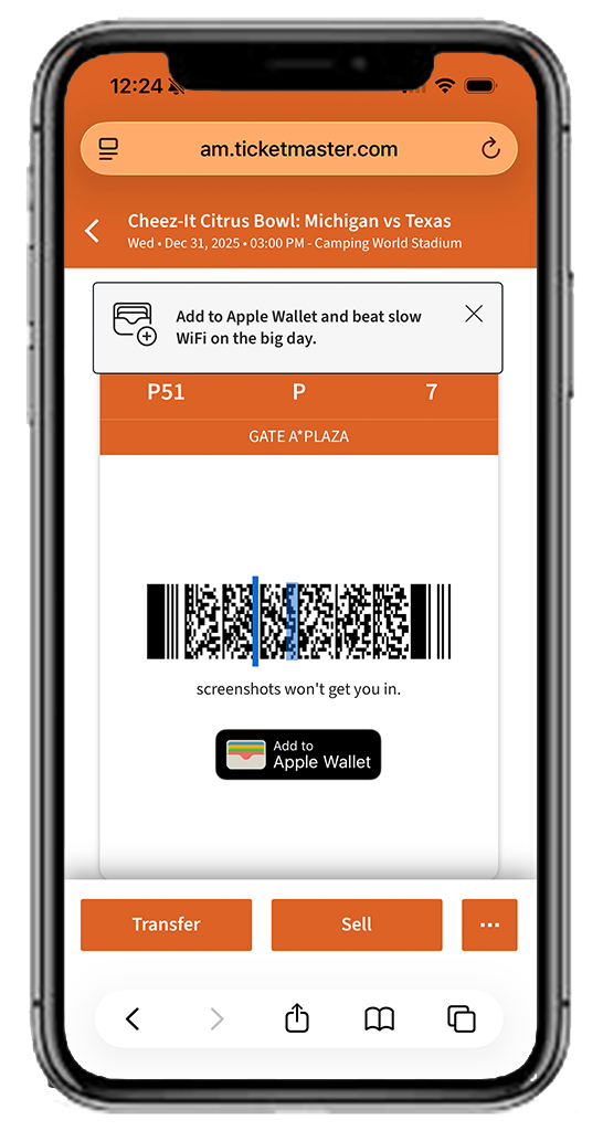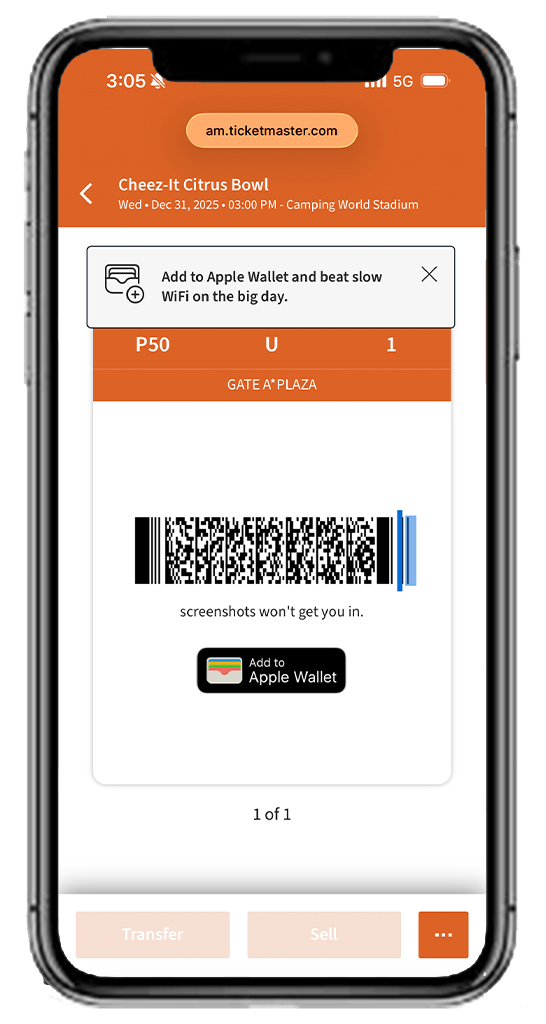 Mobile ticketing greatly improves the fan experience at Camping World Stadium by making stadium entry quick and easy. Managing your tickets from your smartphone provides a more convenient experience while drastically reducing the risk of counterfeit tickets. The Mobile Ticketing Guide below will help you through the steps of accessing, selling and transferring your mobile tickets for Florida Citrus Sports events at Camping World Stadium.