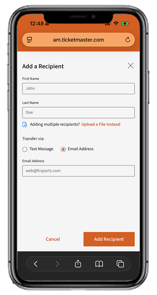 Enter the recipient’s information in the correct fields and then click “Add Recipient” at the bottom of the page.
